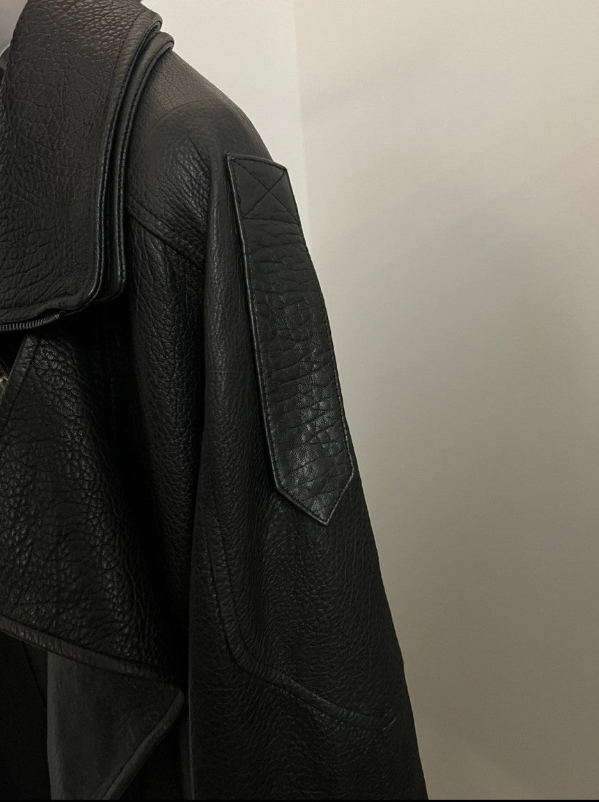 - Batwing sleeves and diagonal seam details for volume and a clean fit