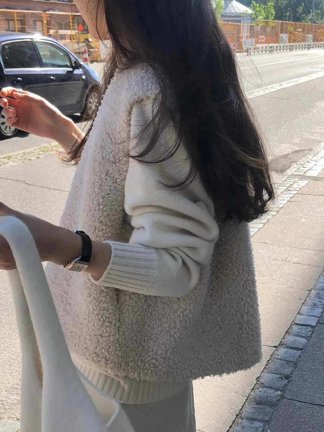 - Shearling-inspired texture on one side, smooth suede finish on the other for versatile styling