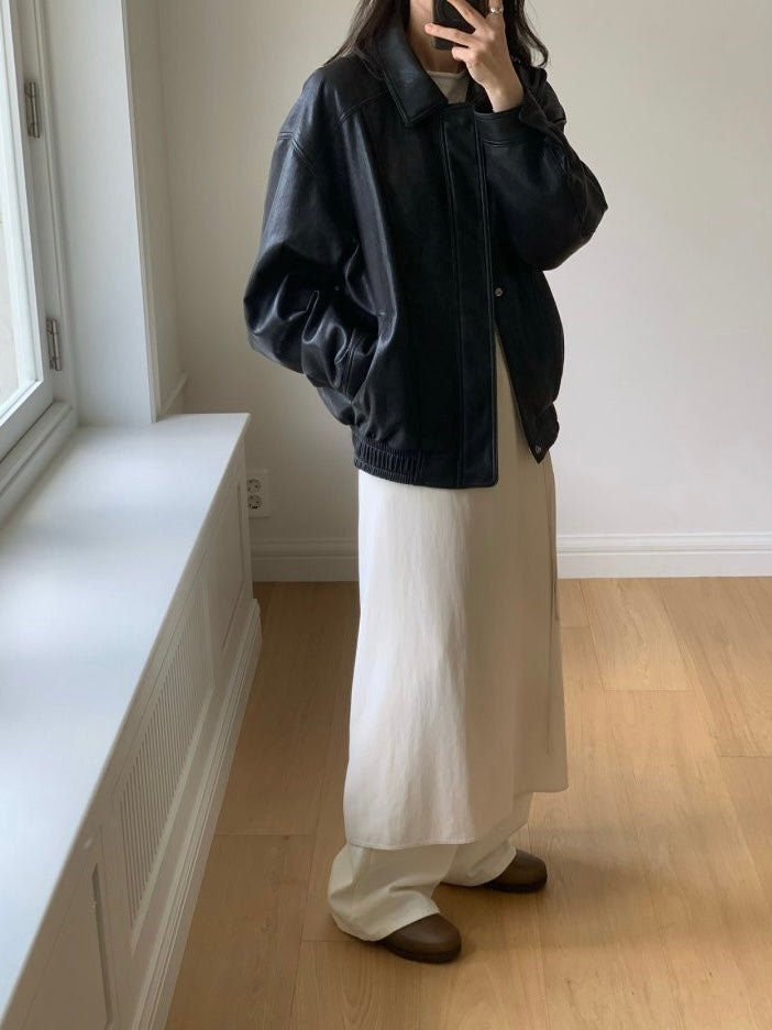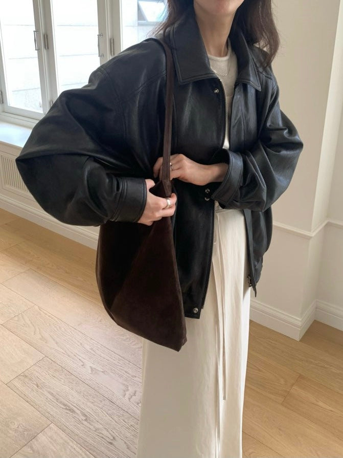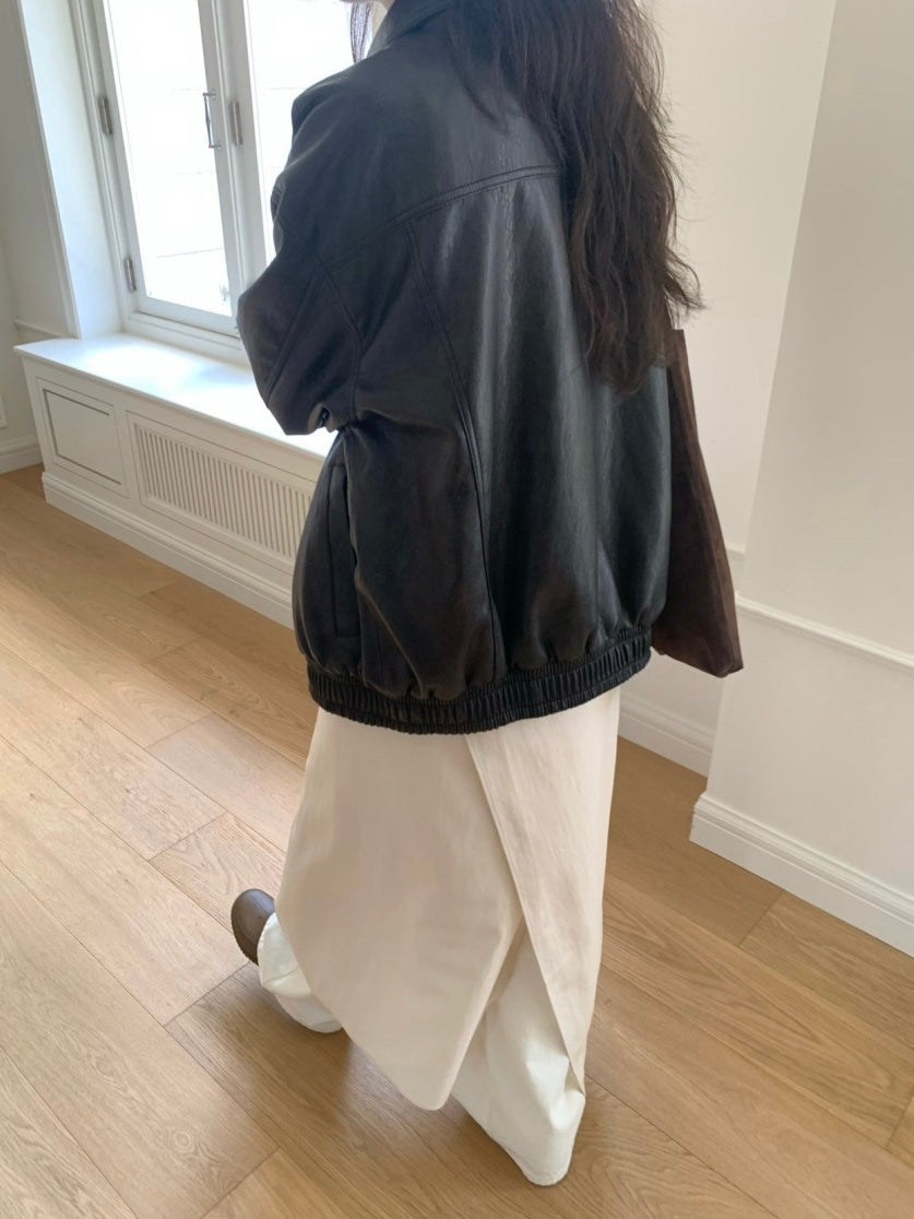 - Oversized bomber silhouette for a modern, relaxed fit