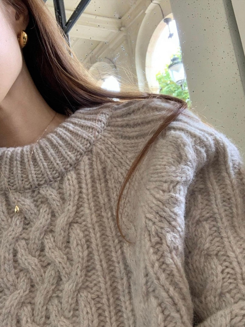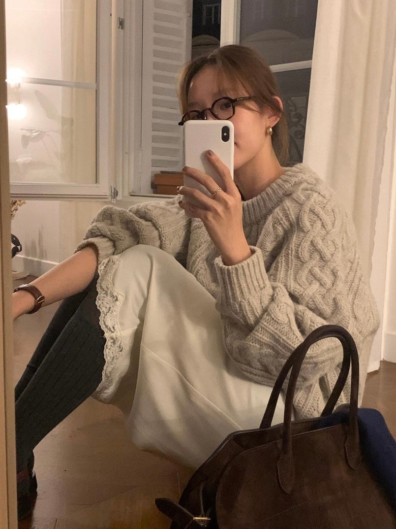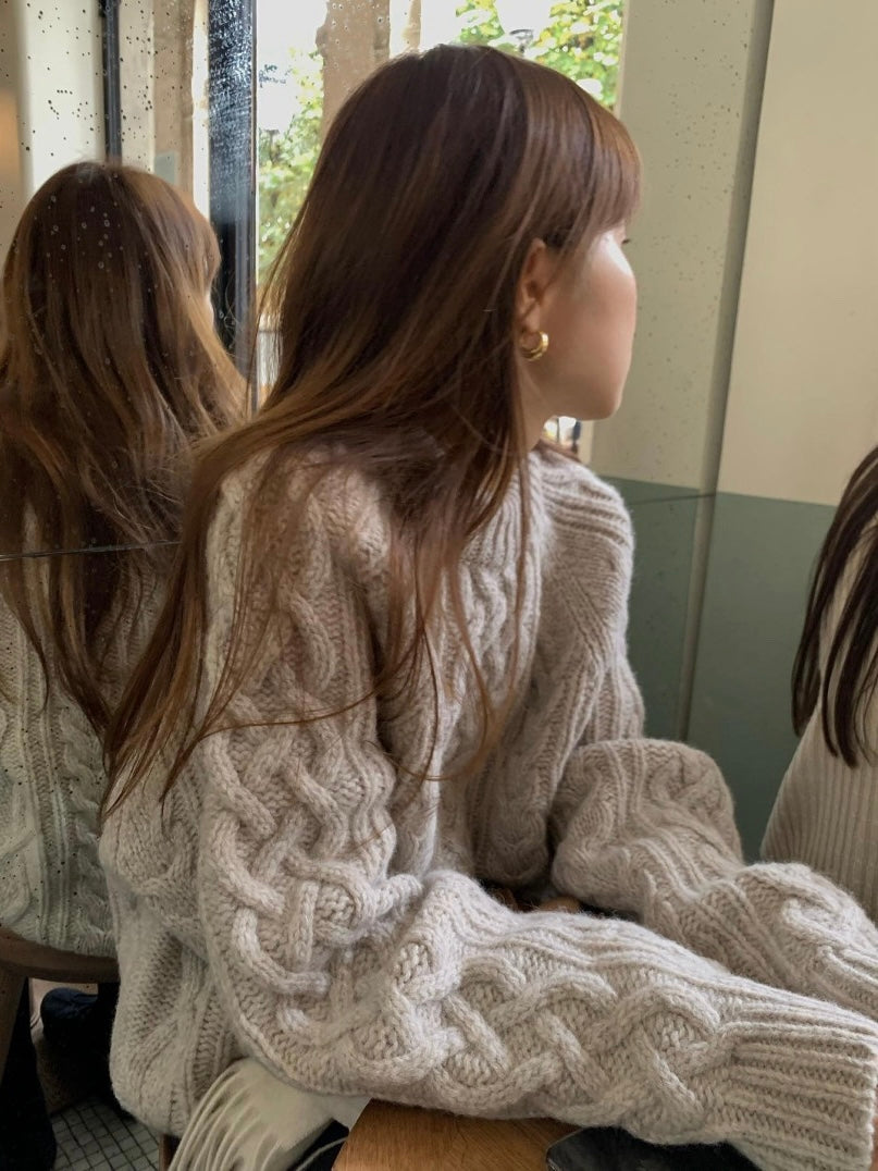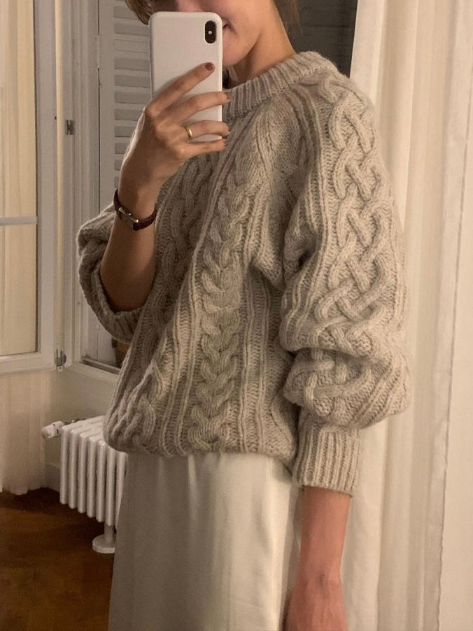 - Classic cable-knit sweater with a relaxed and cozy silhouette