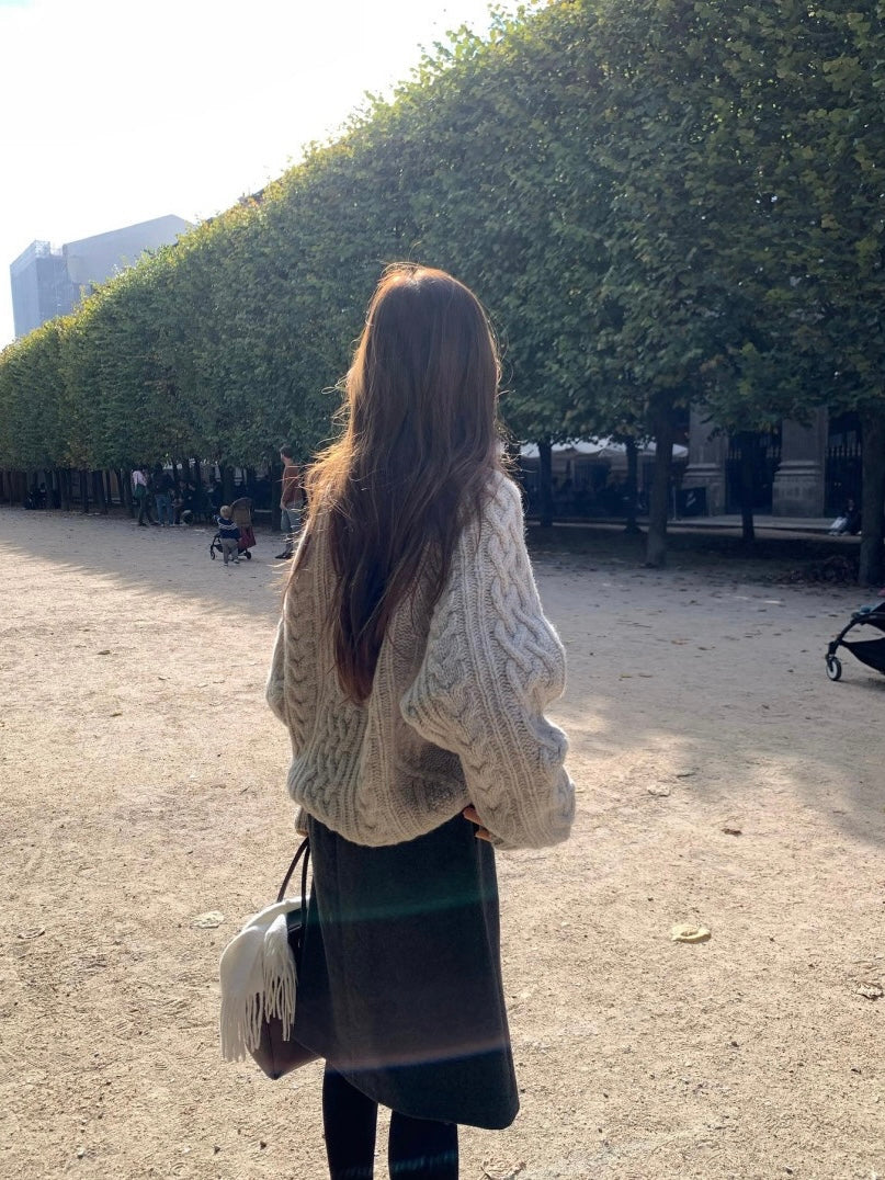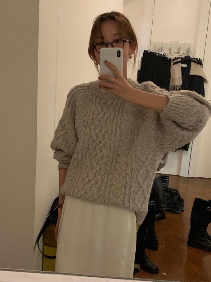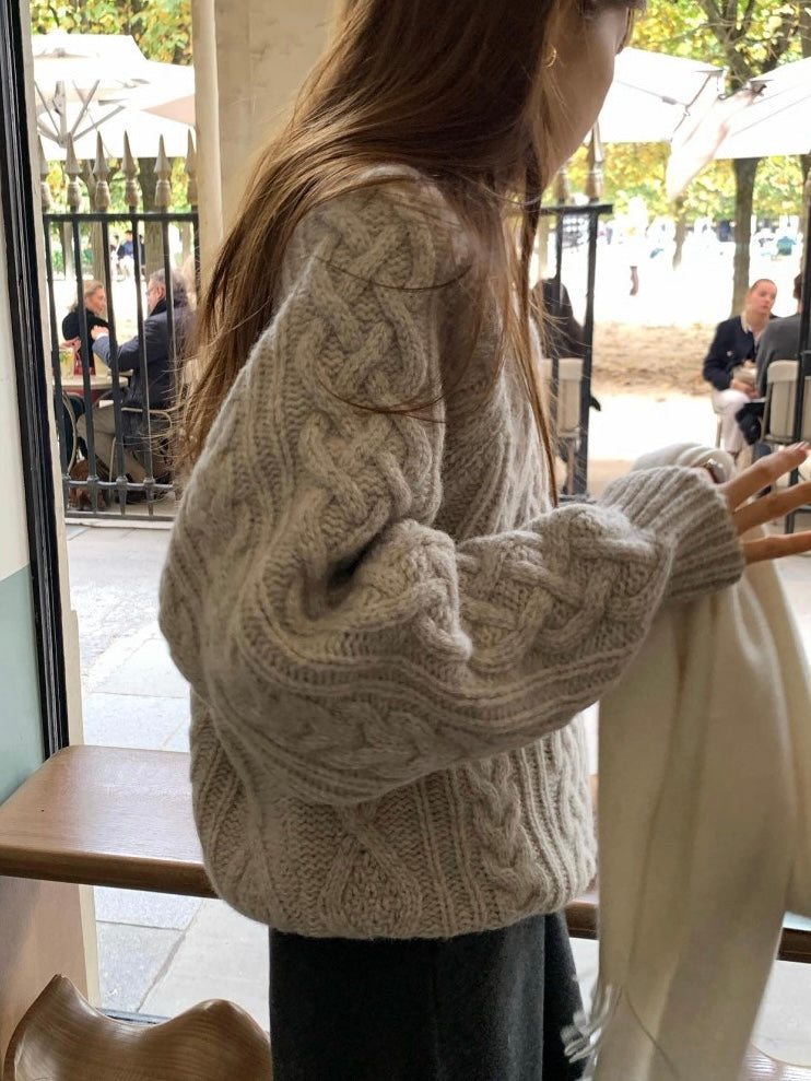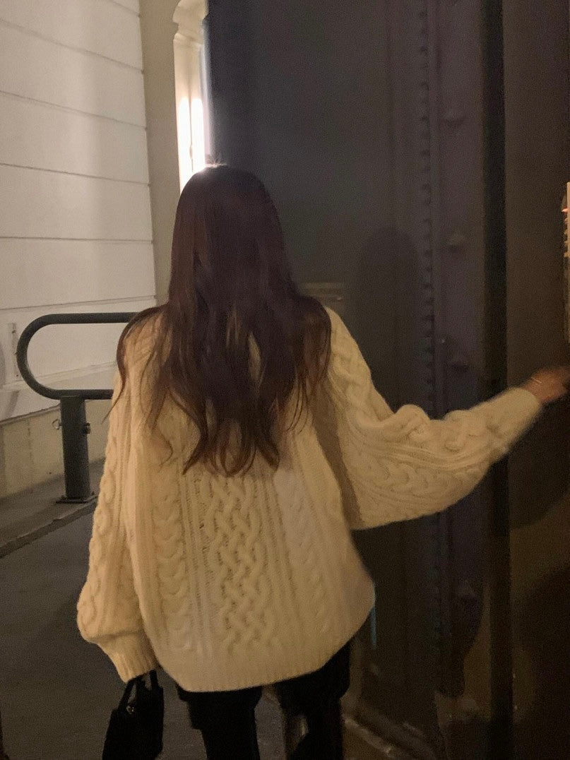 - Classic cable-knit sweater with a relaxed and cozy silhouette