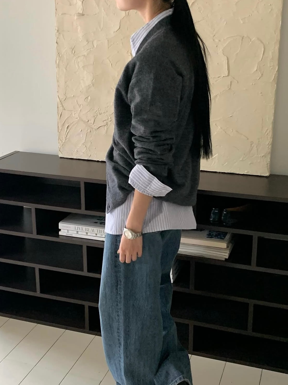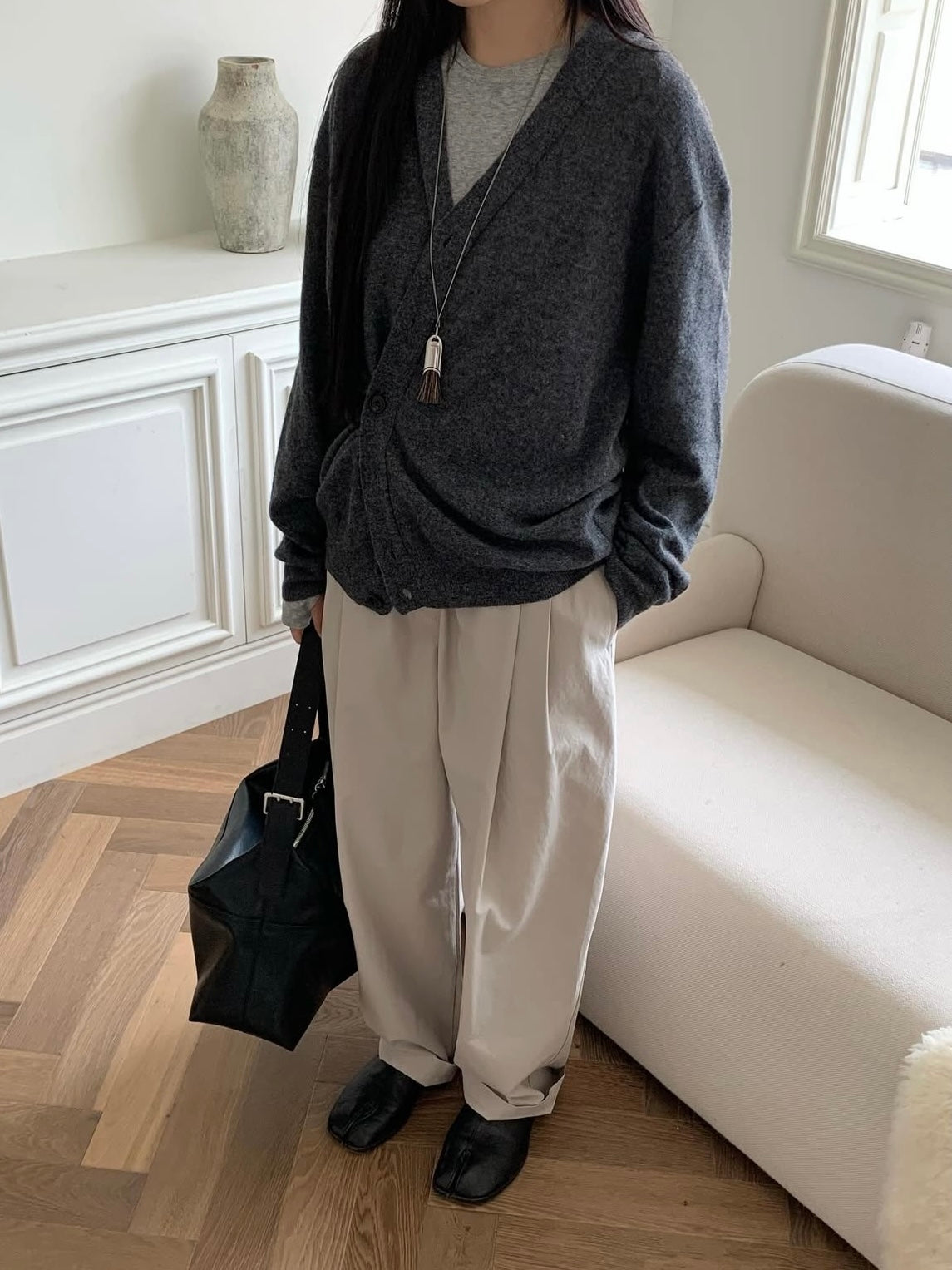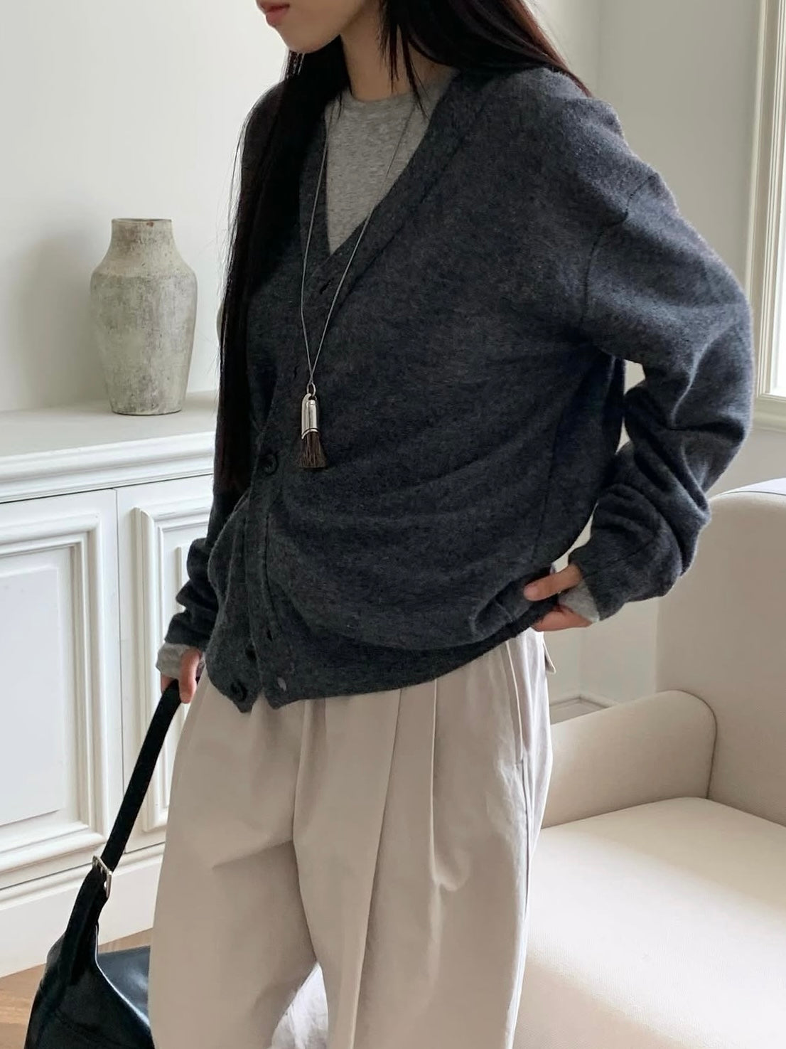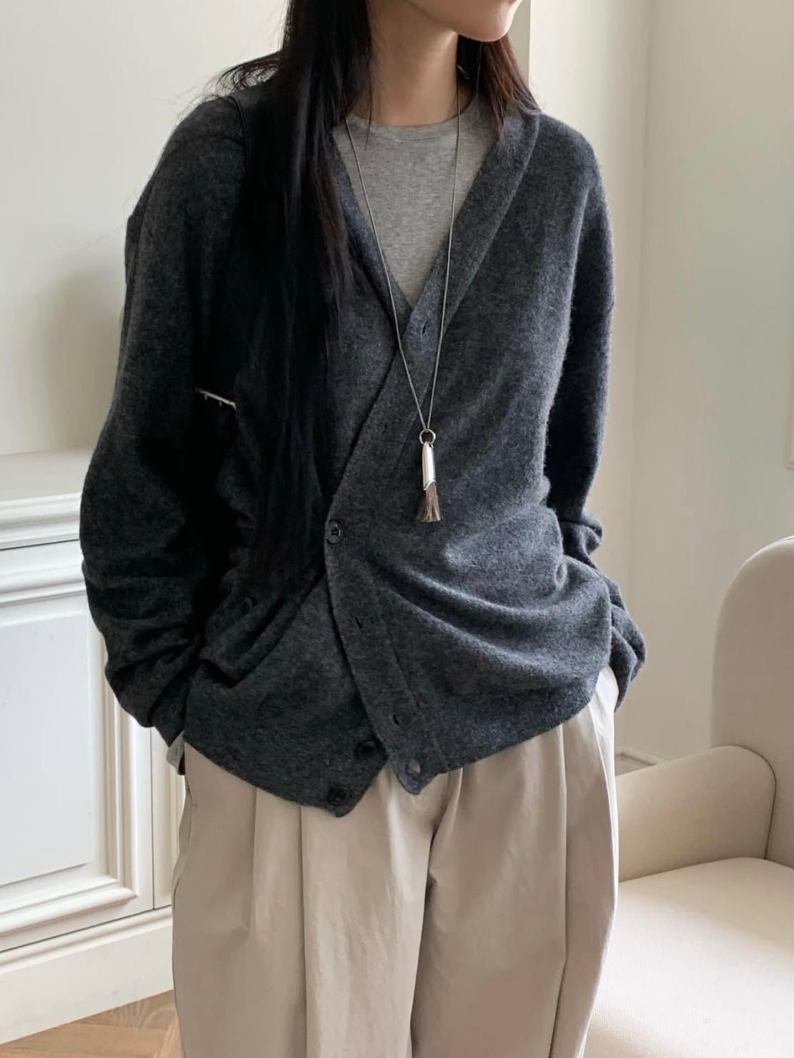 - A timeless V-neck cardigan with a versatile silhouette