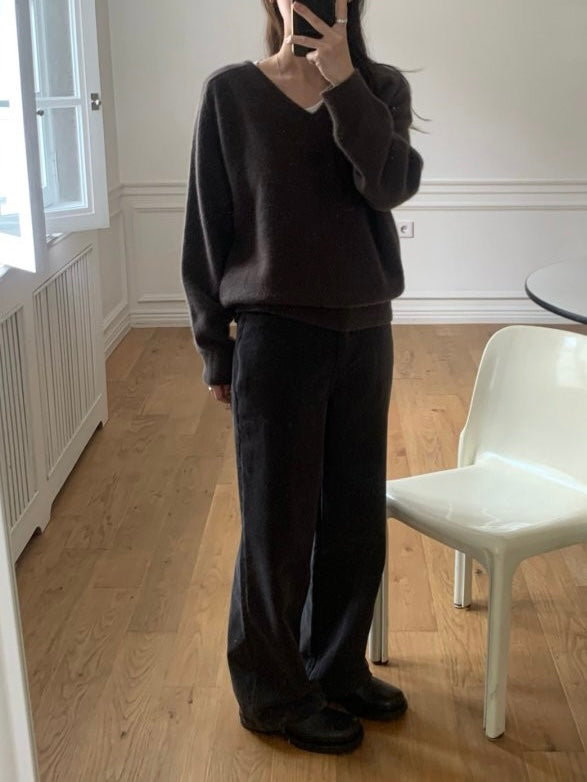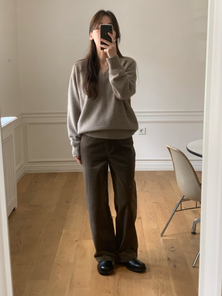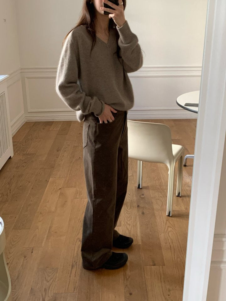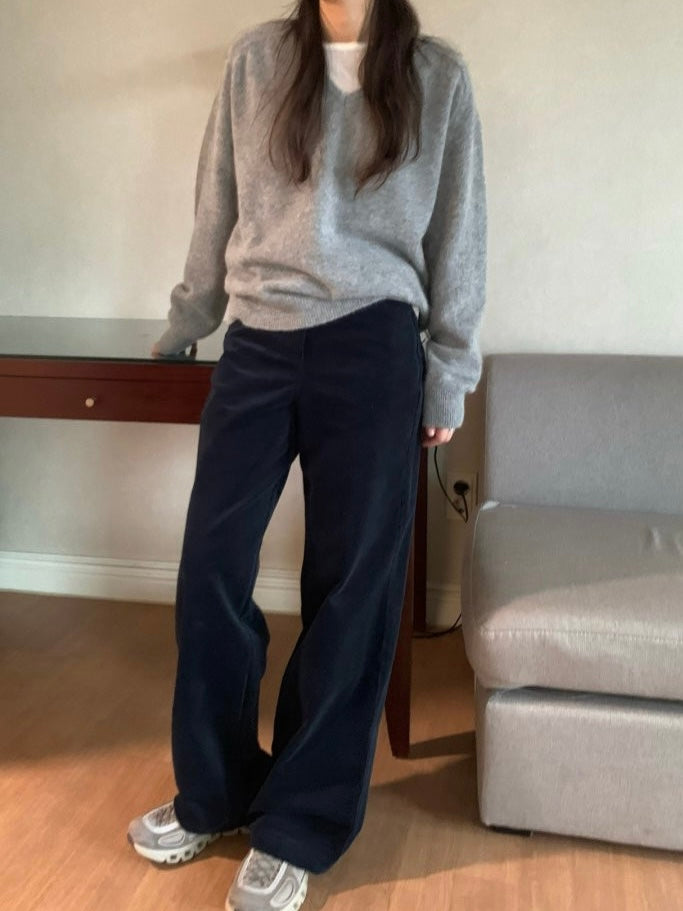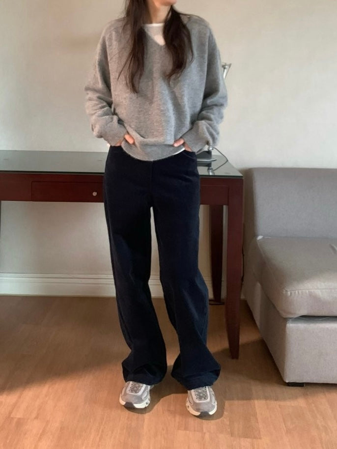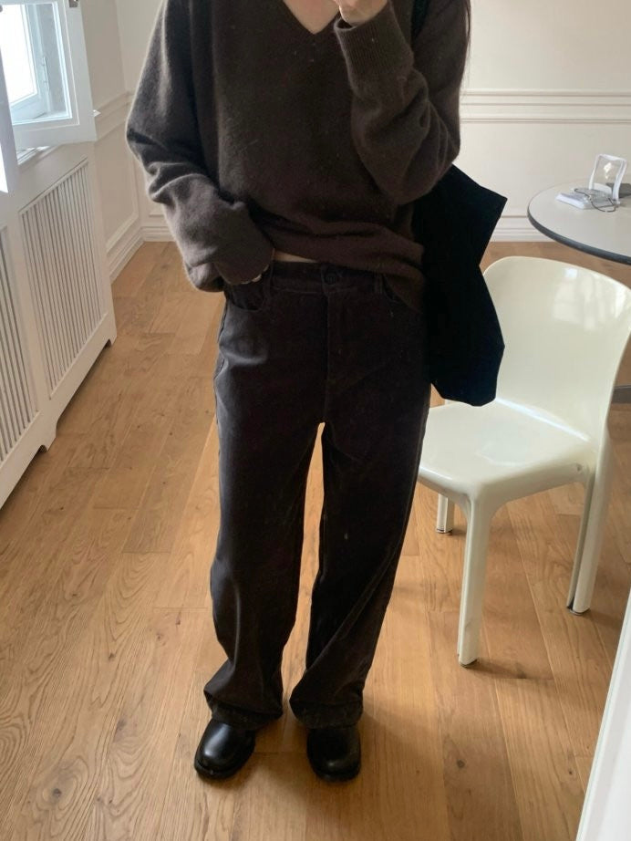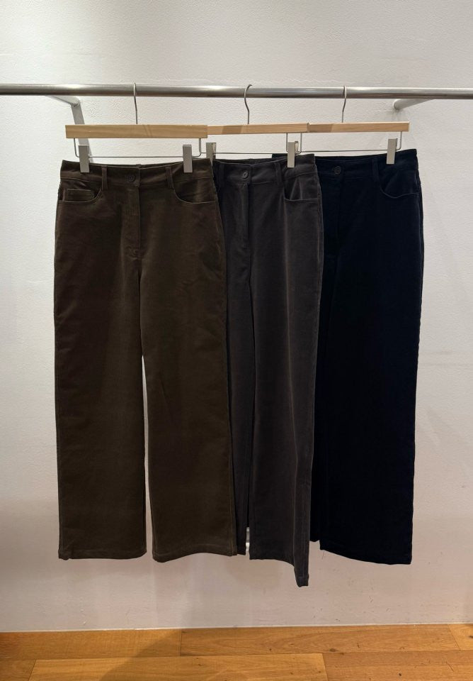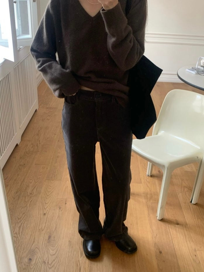 - Soft corduroy pants with a subtle sheen and cozy texture