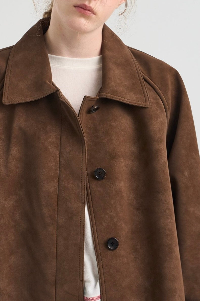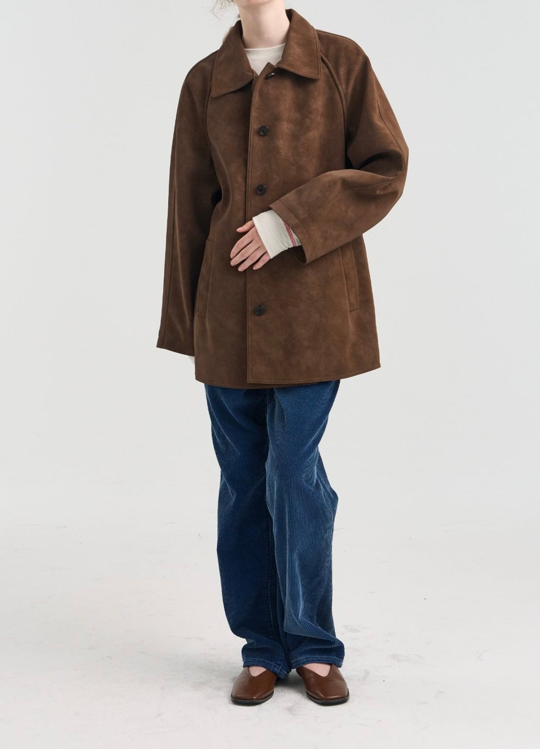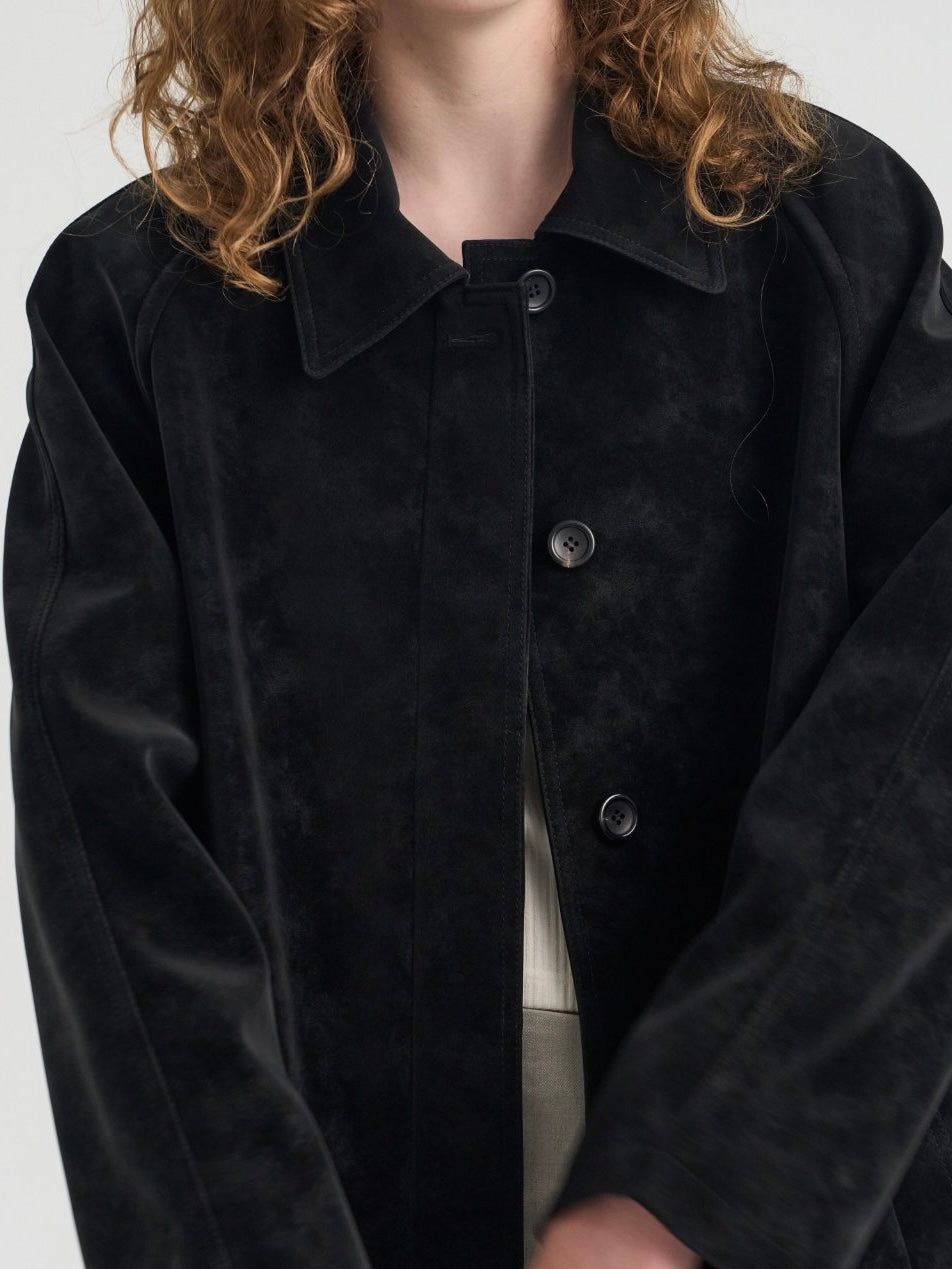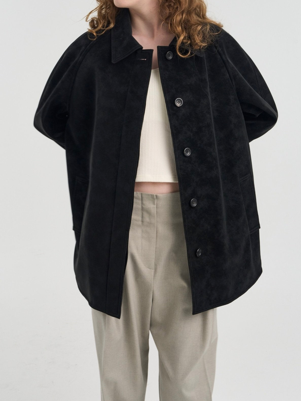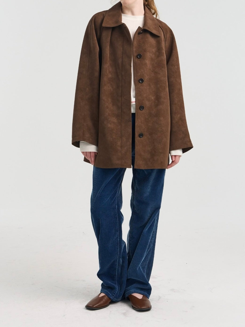 - Oversized raglan-patterned half coat with a relaxed shoulder line and roomy silhouette