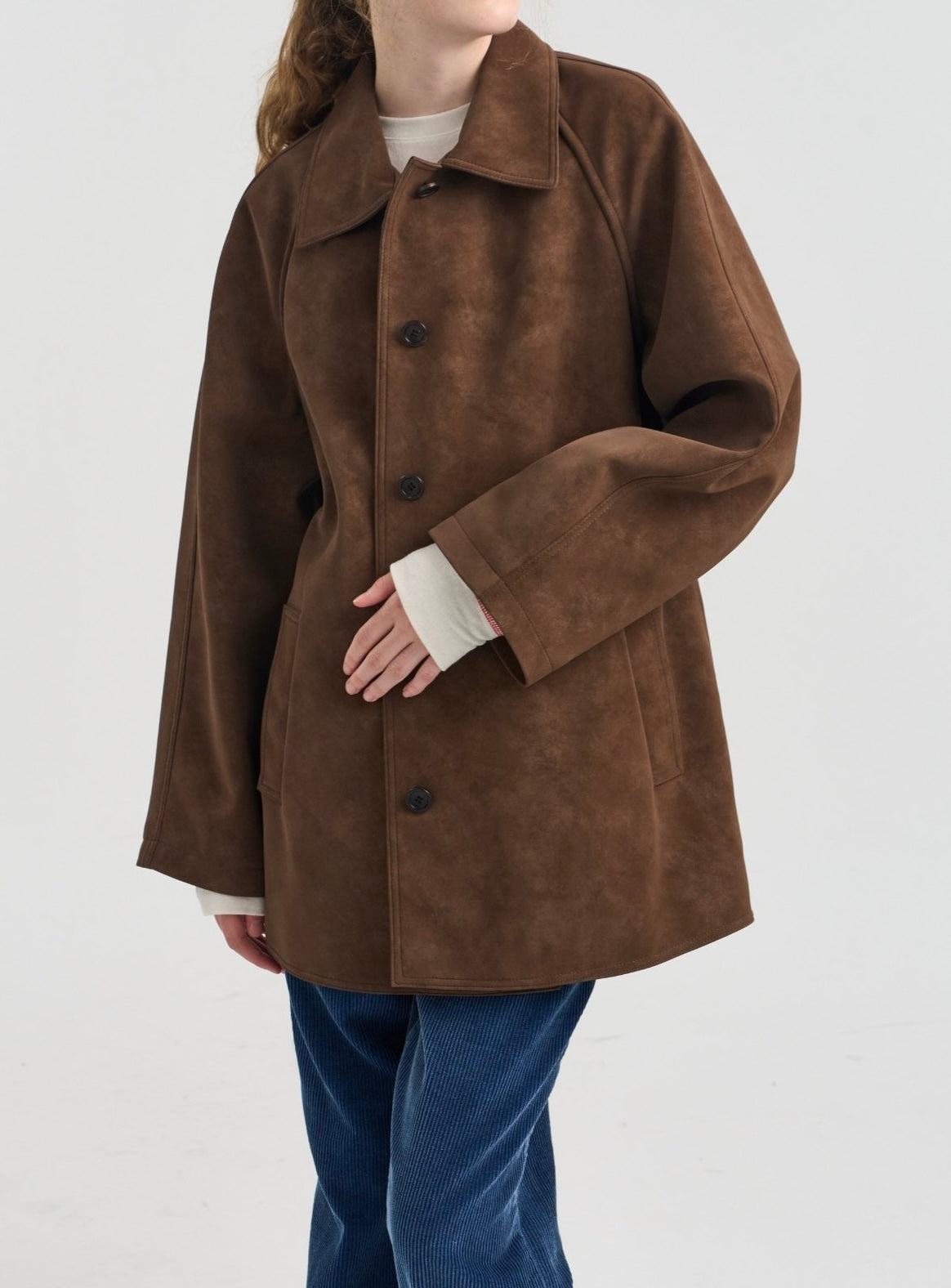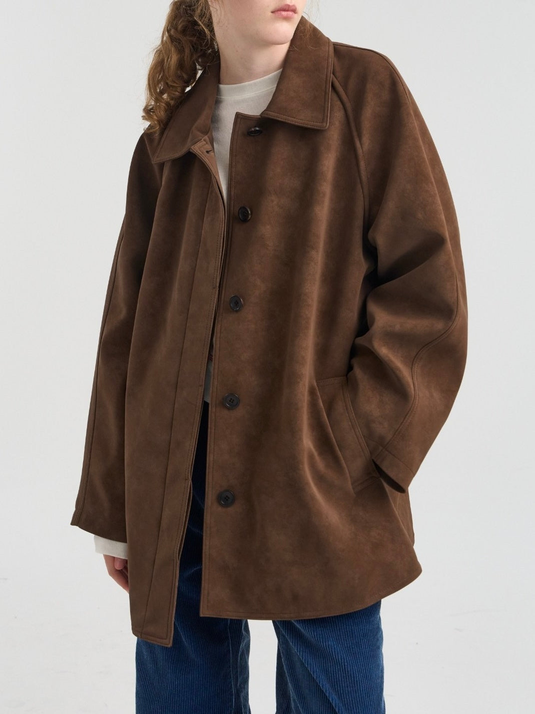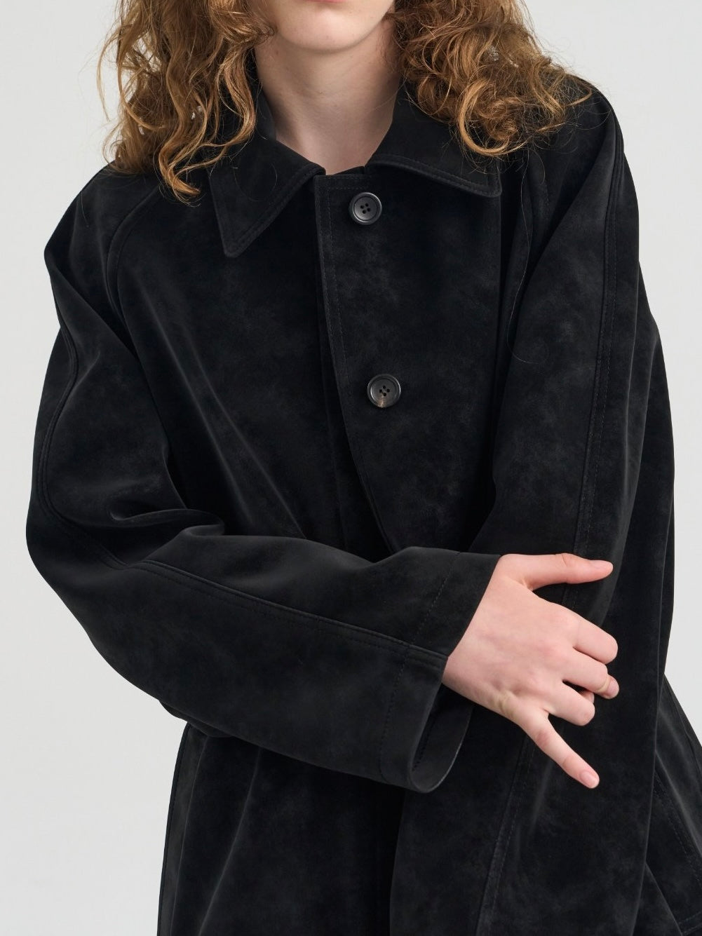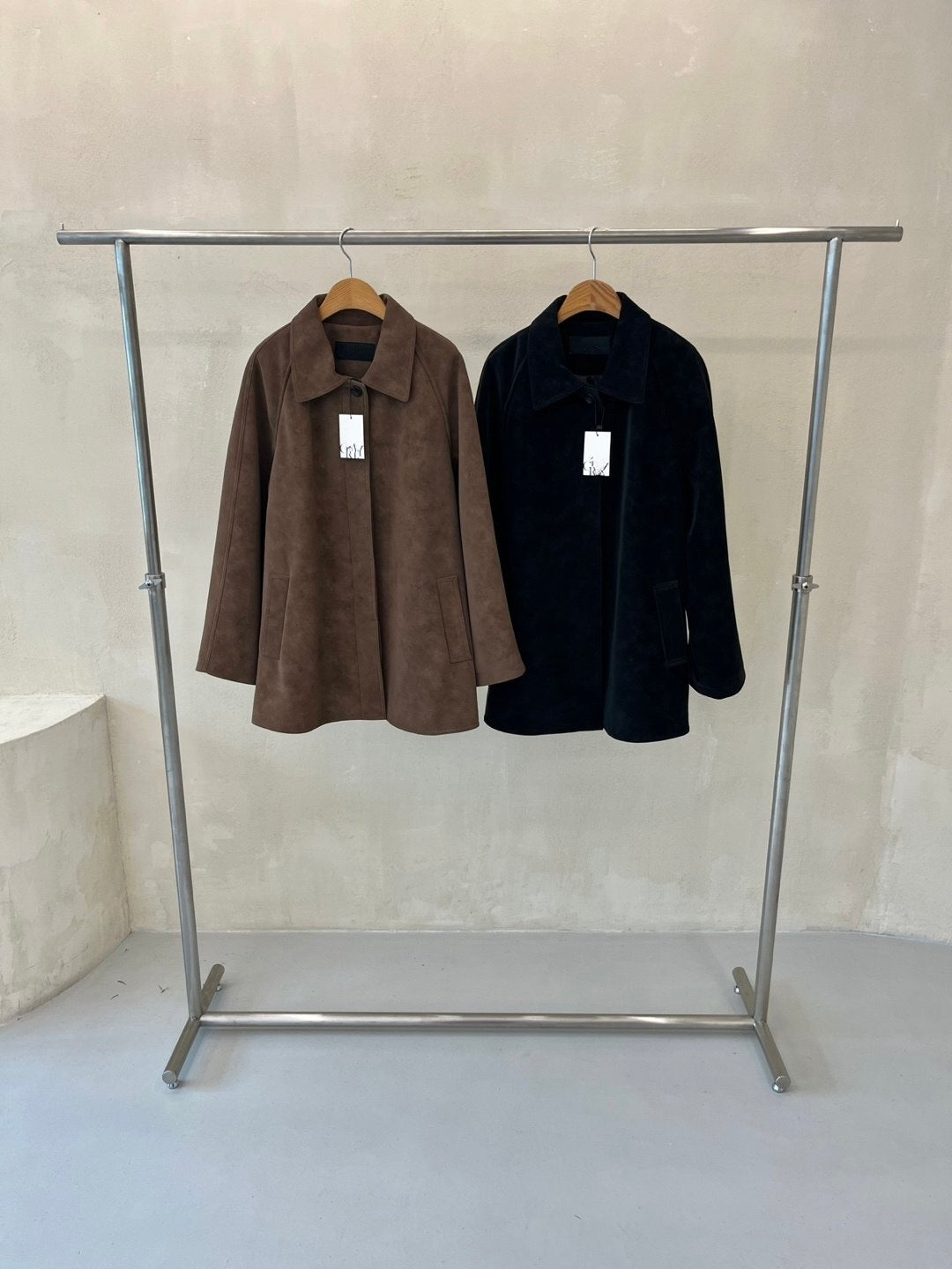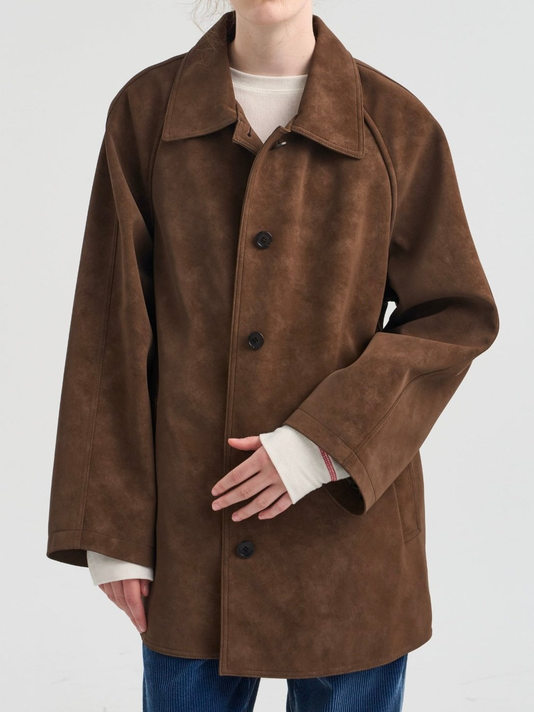 - Oversized raglan-patterned half coat with a relaxed shoulder line and roomy silhouette