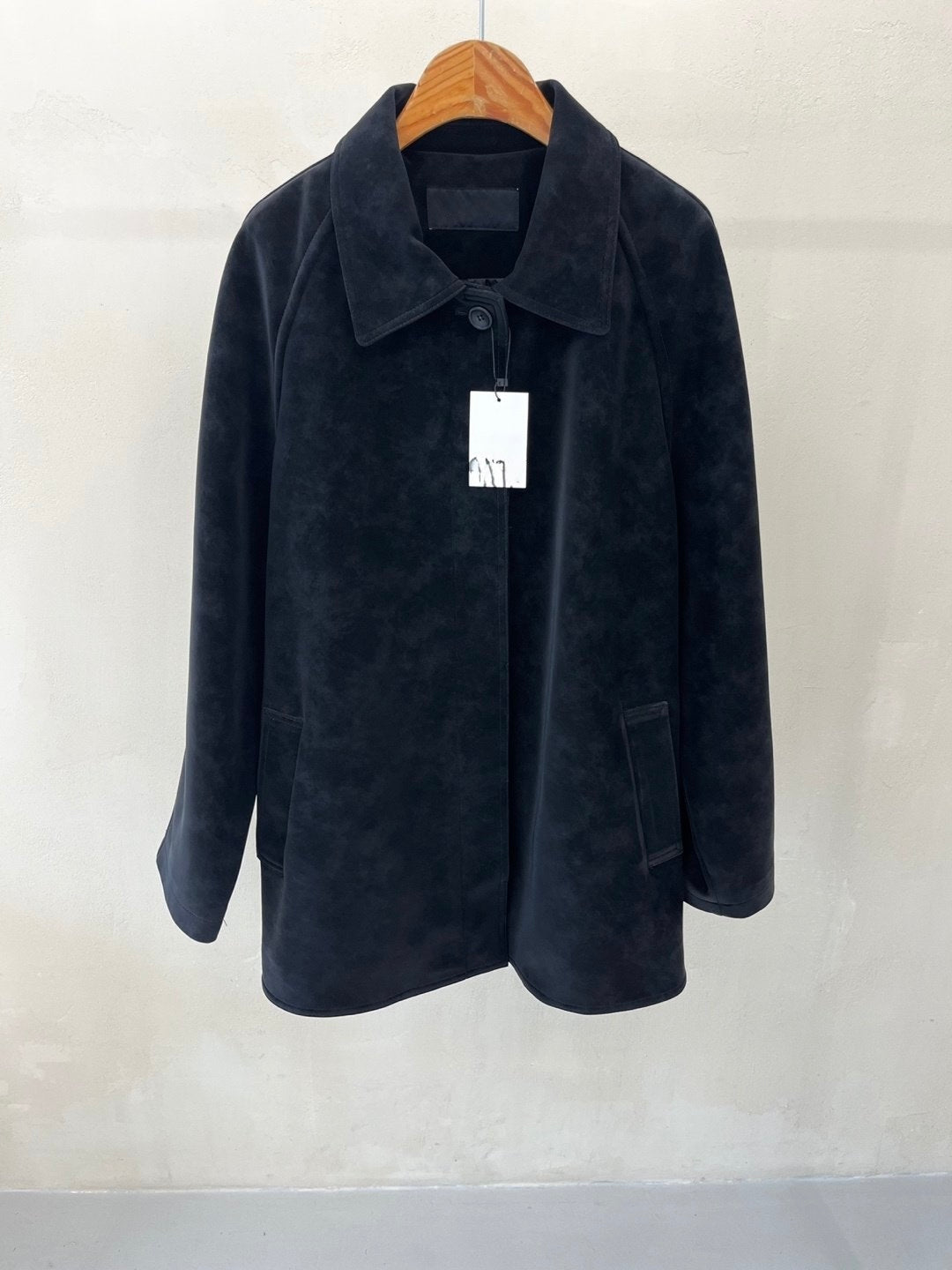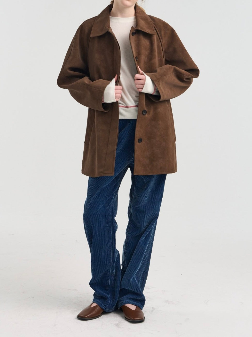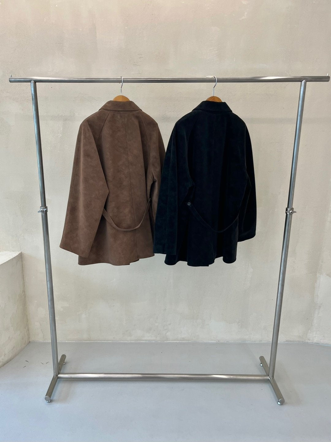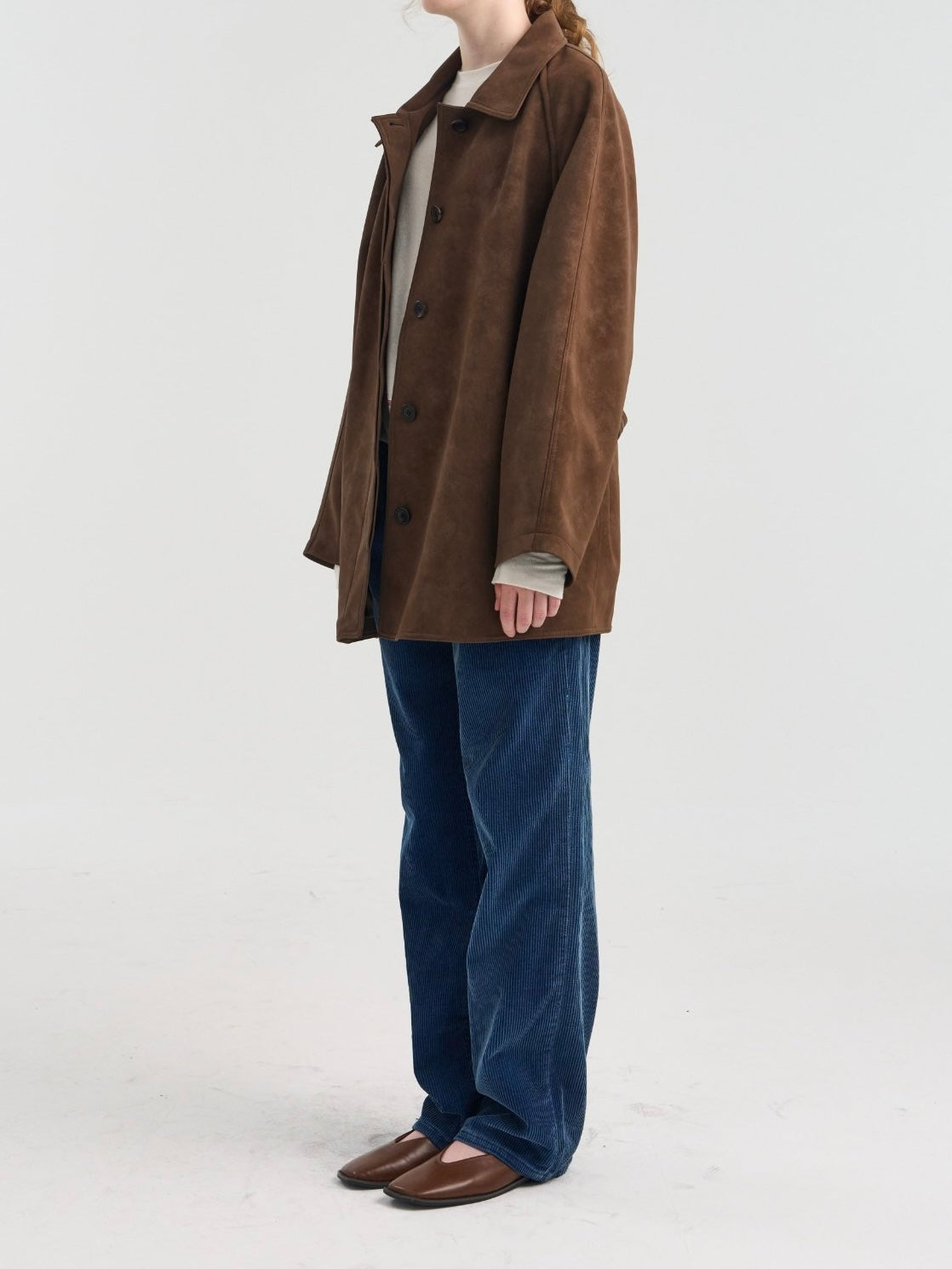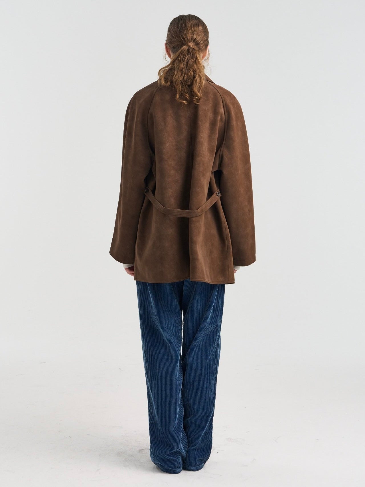 - Oversized raglan-patterned half coat with a relaxed shoulder line and roomy silhouette