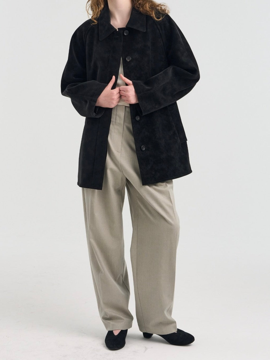 - Crafted from vegetable nubuck fabric with a soft, velvety texture and matte finish
